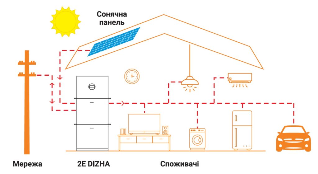 - Proprietary 2E Smart Energy remote monitoring system. This convenient application, compatible with iOS and Android devices (available in app stores), allows real-time monitoring of the 2E backup system’s status: current consumption, energy generation level, and many other parameters are not only displayed but also stored for future analysis.