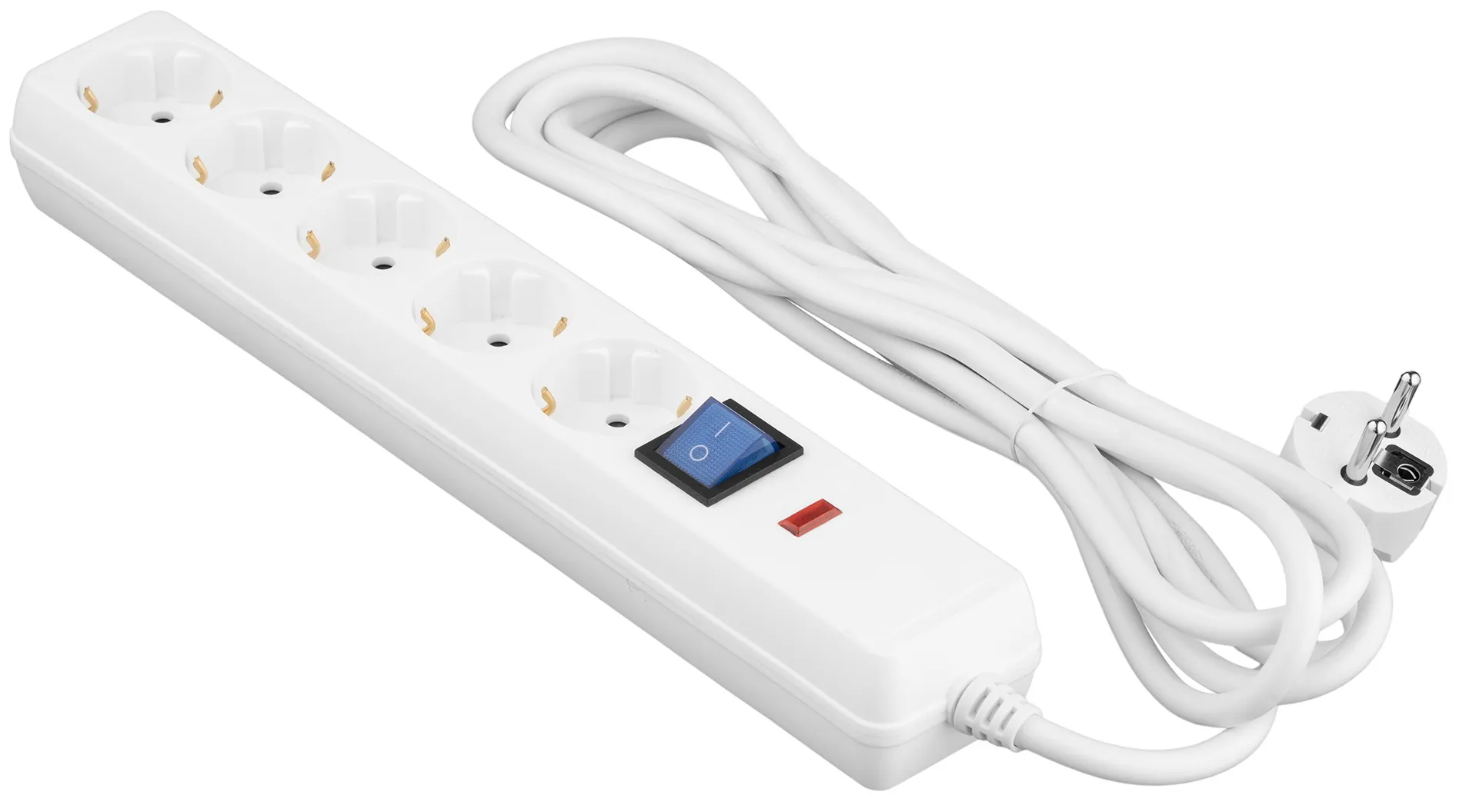 2E Power strip with surge protection, 3m, 5xTypeF, 16A, white