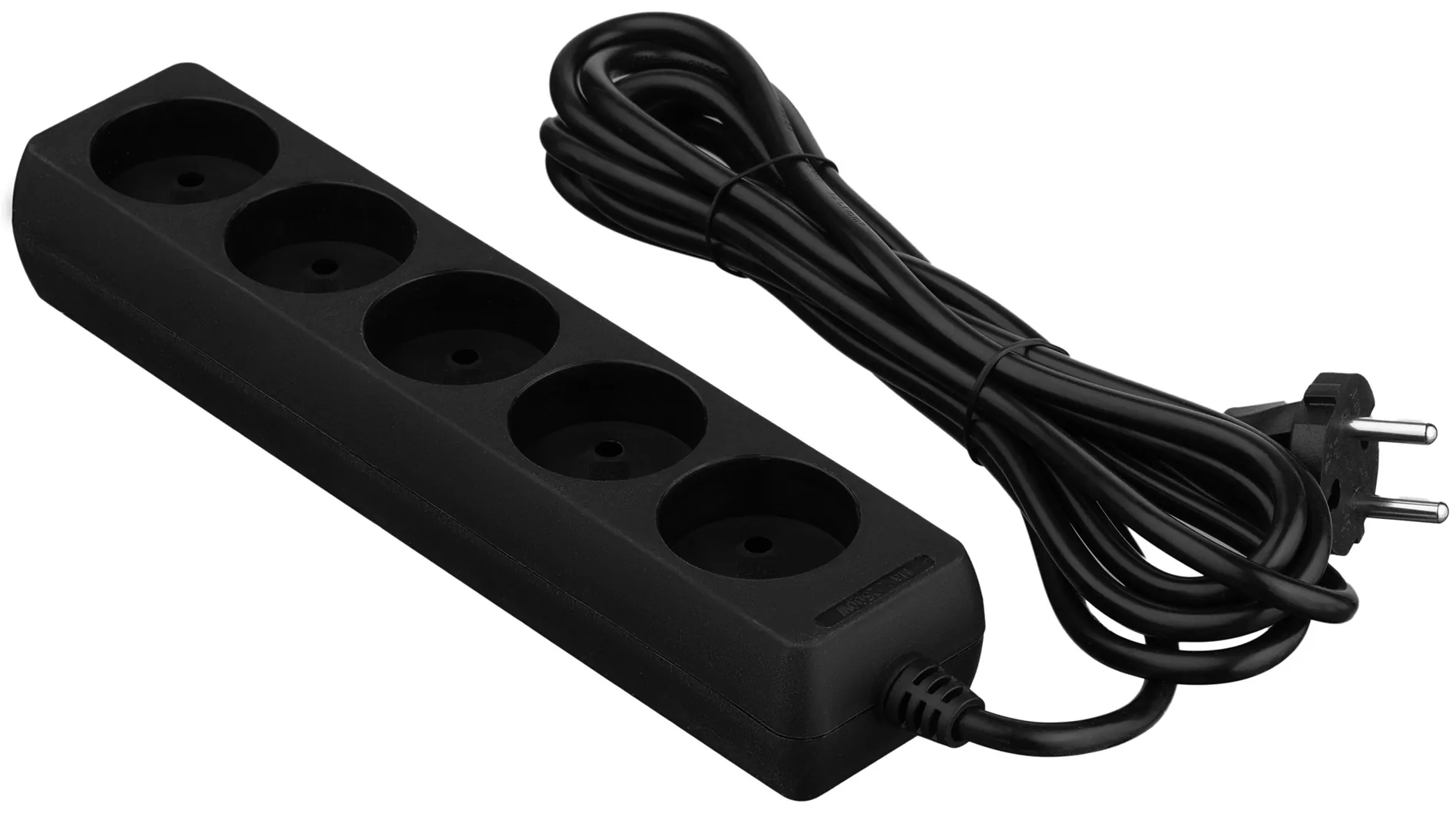 2E Power strip with surge protection, 5m, 5xTypeF, 16A, black