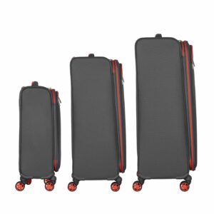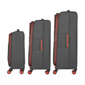The useful volume of the medium and large suitcases can be expanded – a practical feature for long trips.