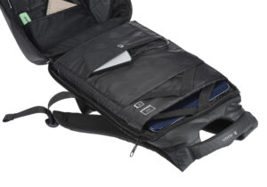 The backpack is made of practical and reliable materials. A water-repellent fabric protects things and equipment from moisture, and a shock-absorbing inner part – from damage during falling and shocks. This model uses metal fittings. The backpack will fit a laptop, tablet, charger, documents and personal items. The backpack is equipped with a USB port for convenient use of a portable battery. Additional protection is provided by the TSA combination lock. For transportation, a handle and adjustable shoulder straps with shock absorbing pads are provided. For convenience, an orthopedic backrest is provided.