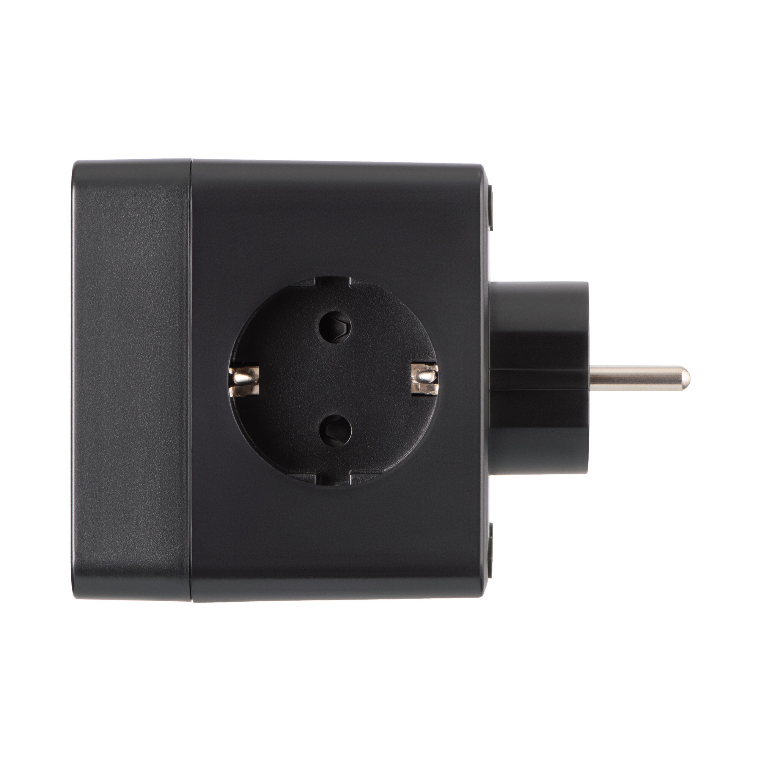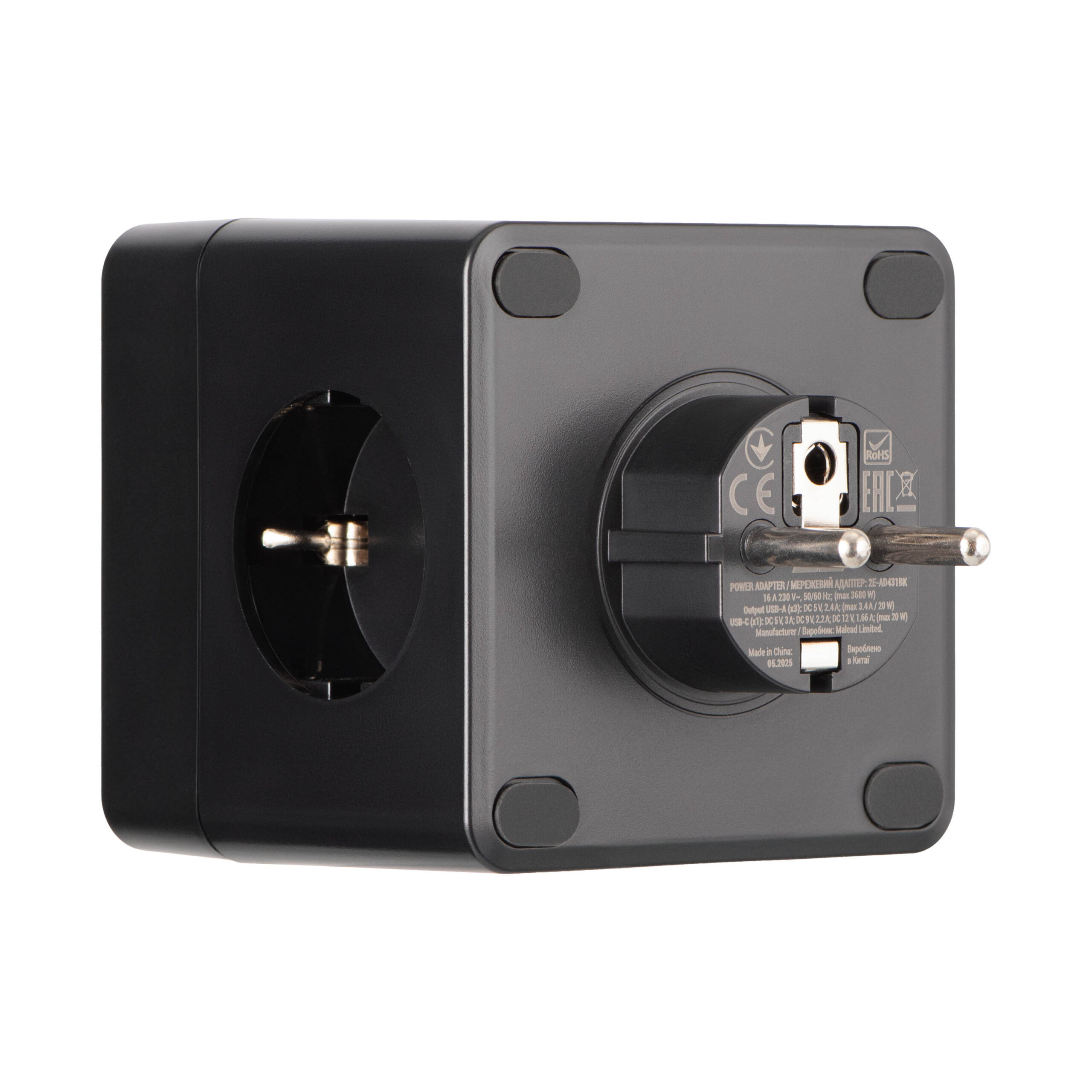Для додаткової зручності аксесуар устатковано трьома USB-A-рознімами та одним USB-C: загальні характеристики – 5 В/3,4 А, до 20 Вт. Корпус виготовлено з вогнетривкого пластику, що убезпечує від перегрівання і мінімізує ризик займання. Також передбачено вбудовані шторки для захисту від дітей, які унеможливлюють випадковий доступ до контактів.