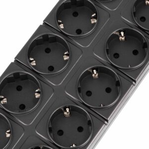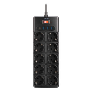 Для додаткового контролю передбачено LED-індикатори: зелений сигналізує про наявність заземлення, а червоний – про активний захист. Корпус подовжувача виготовлено з вогнетривкого пластику, стійкого до впливу високої температури, а захисні шторки в розетках убезпечують від випадкового доступу.