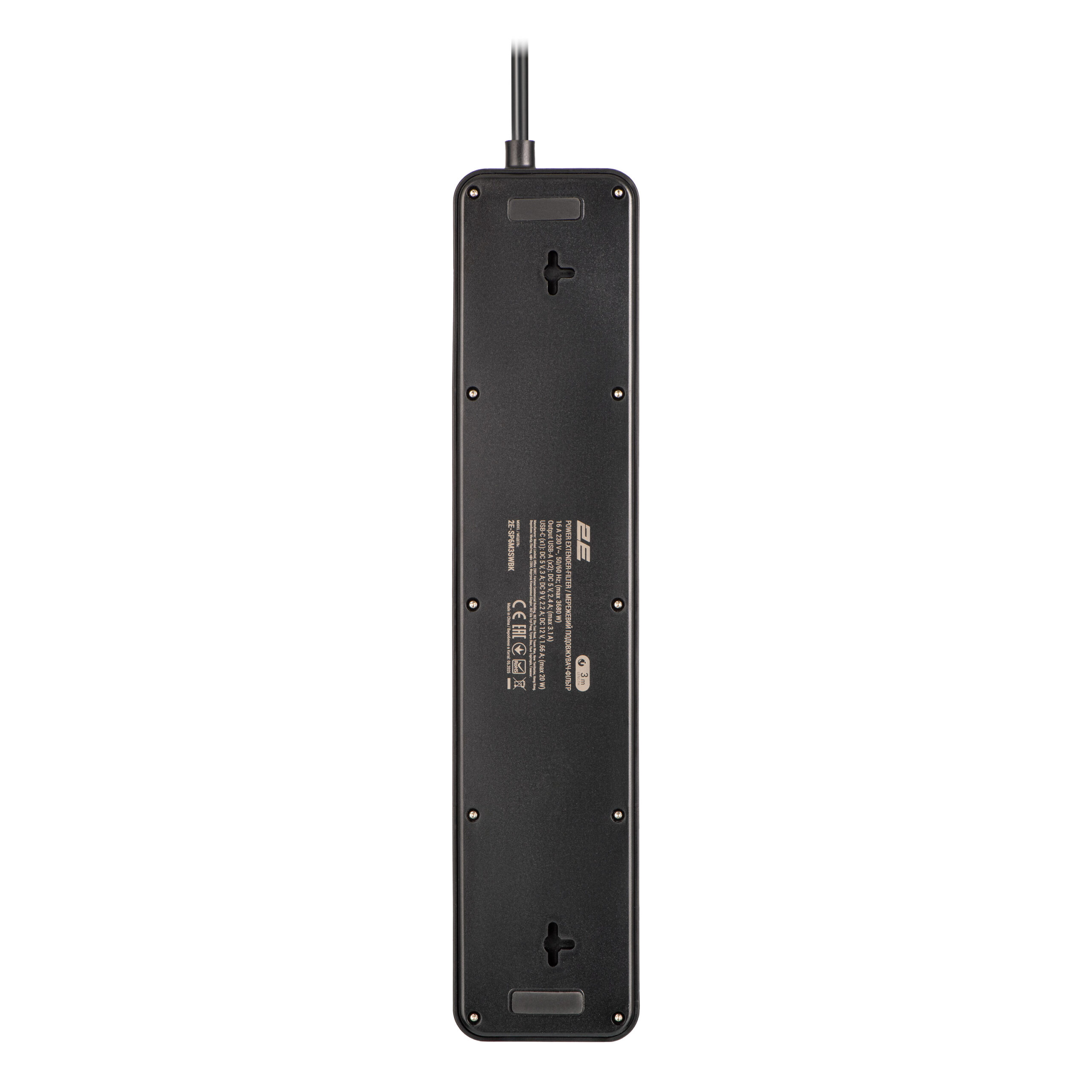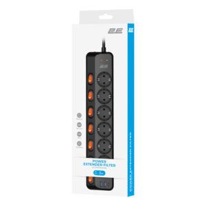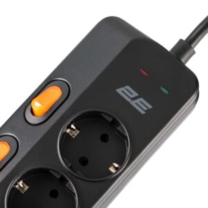Подовжувач мережевий 2E 3м, 6xТипF, 16A, 2xUSB-A, 1x USB-C фільтр, чорний