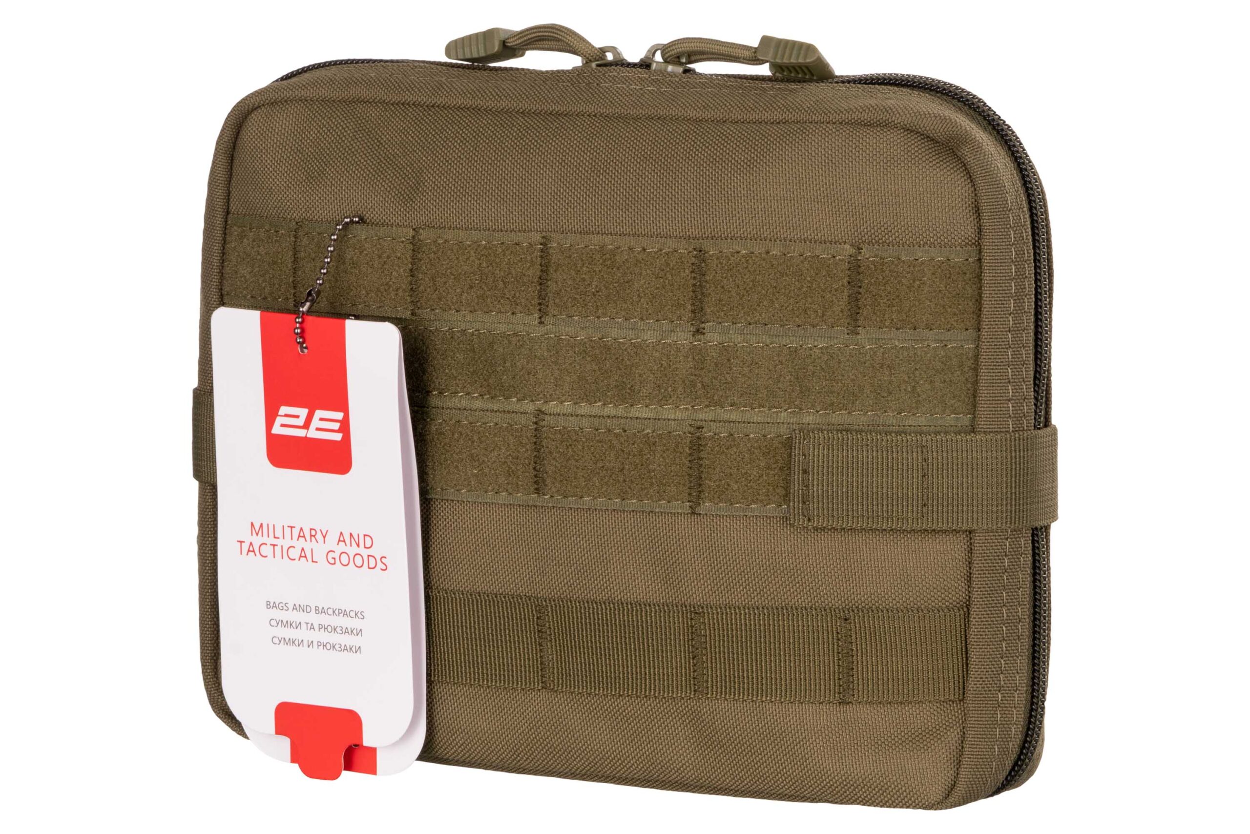 Особливістю органайзера 2Е є продумана конструкція, зокрема багатство кріплень, що дає змогу розміщувати підсумок на плитоносці, рюкзаку чи використовувати з плечовим ременем (немає в комплекті). Для кріплення ремінця на задній панелі вшиті дві пластикові петлі. Також на тій же тильній стороні передбачено чотири горизонтальні стропи «молле» та чотири додаткові вертикальні фіксатори на кнопках (знімні). На фронтальній панелі органайзера, крім поверхні для розміщення шевронів тощо (Velcro), є ще три кріплення MOLLE. Із боків тактичний підсумок додатково закривається двома фіксаторами-липучками.