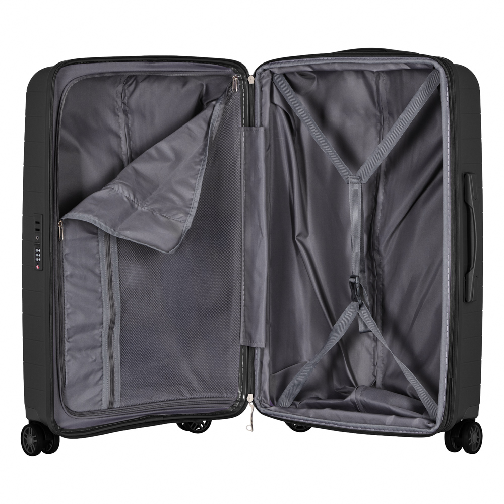 Жорсткий корпус виготовлено зі 100% поліпропілену, що забезпечує надзвичайну міцність за мінімальної ваги. Усередині валіз передбачено розділювачі та регульовані пакувальні паски для надійної фіксації речей, це організовує і впорядковує поклажу, і в такий спосіб забезпечується високий рівень комфорту та безпеки, що зробить подорож безтурботною.