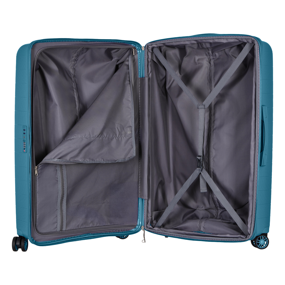 Жорсткий корпус виготовлено зі 100% поліпропілену, що забезпечує надзвичайну міцність за мінімальної ваги. Усередині валіз передбачено розділювачі та регульовані пакувальні паски для надійної фіксації речей, це організовує і впорядковує поклажу, і в такий спосіб забезпечується високий рівень комфорту та безпеки, що зробить подорож безтурботною.