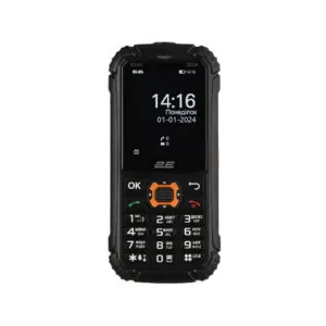 В мире современных смартфонов кнопочные телефоны, объединяющие классический дизайн и надежность, остаются важными для людей, которые ищут простоту и долговечность. Новый защищенный телефон 2E R240 GUARD из линейки 2025 года с увеличенной батареей является удачным сочетанием агрессивного стиля и высокой функциональности. Его 2,4-дюймовый цветной экран разрешением 320 × 240 пикселей делает пользование телефоном удобным, ведь шрифты и иконки главного меню увеличены для лучшей читабельности. Классический дизайн в черном цвете с матовой поверхностью корпуса успешно дополняют оранжевые акценты на клавиши SOS, боковом слайдере управления фонариком и центральной навигационной клавише. Большие клавиши с подсветкой позволяют легко набирать номер или управлять меню даже в темноте. Телефон толщиной всего 13 мм удобно лежит в руке, а отверстие для крепления ремешка придает комфорт во время ношения.