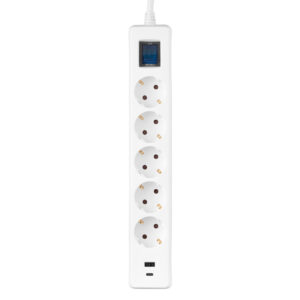 Удлинитель-фильтр сетевой 2E 5xТип F, 3×1.5мм кв, 16A, 1xUSB-A, 1xUSB-C, с защитой от перенапряжения, 3м, белый