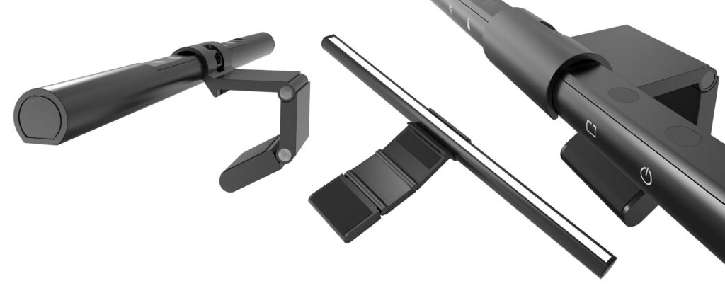 The lamp body is made of durable aluminum, a material that dissipates heat and ensures the durability of the design. The mount securely attaches the lamp to monitors with a diagonal of 13 to 34 inches without damaging the frame. Connection is via USB-A or USB-C, so power can be taken directly from a computer, laptop, or power bank. The 1.2 m cable provides freedom of placement, and the set includes a storage case, mounting screwdriver, and instructions.