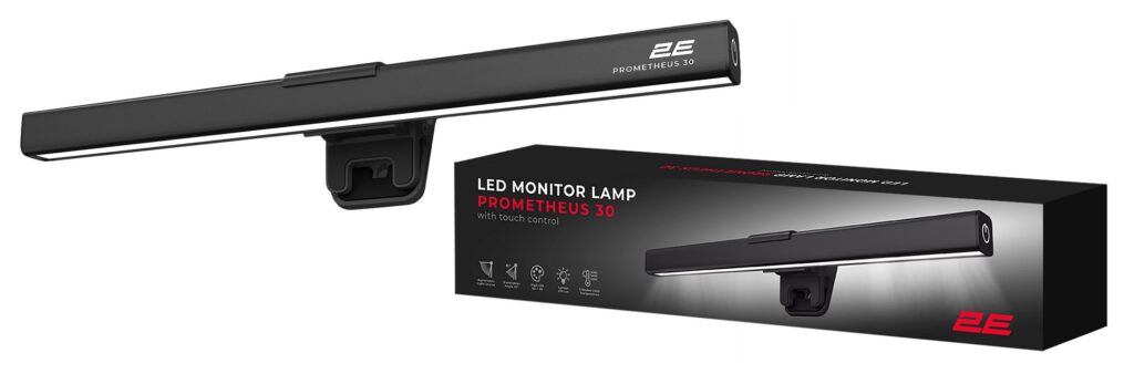 Light, focused light that does not distract, dazzle, or scatter around – this is what modern work lighting should be like. 2E PROMETHEUS monitor lamps are designed for those who value order, concentration, and comfort. They illuminate only the work surface, leaving the rest of the space in cozy semi-darkness. Due to the mounting on the upper frame of the screen, the lamp does not take up space on the desk, and the light flux is directed at exactly the right angle – without glare on the monitor.