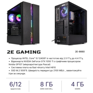 2E 2E PC Complex Gaming Intel i5-12400F/H610/8/500F/NVD1050TI-4/Win11H/2E-G2107-500