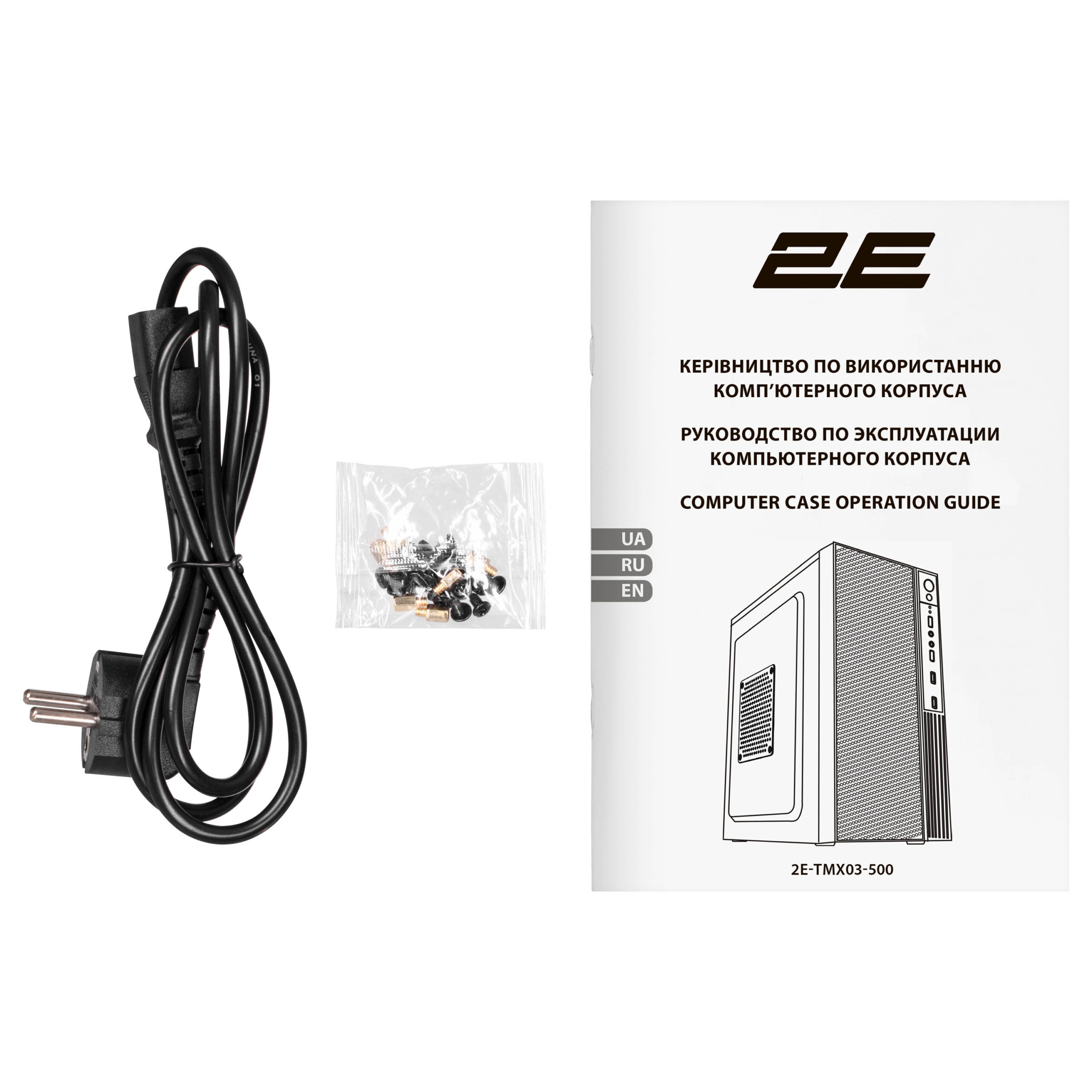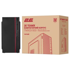 The 2E TeamX TMX03-500 computer case with a 500W power supply unit is neat and compact, with a stylish front panel, perfect for self-assembly and industrial assembly, thanks to the rationally organized internal space and uncomplicated design. Made of 0.45mm steel. The standard size of the Mini Tower case is compatible with Micro ATX, Mini ITX motherboards.
