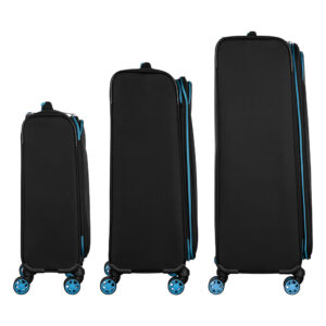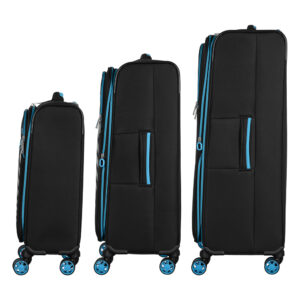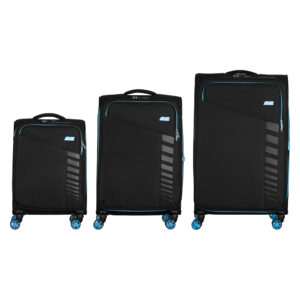 This collection of ultra-lightweight suitcases (3 pcs.) and backpacks (3 pcs.) is ideal for those who value mobility and well-thought-out comfort while traveling. The suitcases feature a rigid yet lightweight frame covered with durable textured polyester fabric. Inside, there are adjustable packing straps for securing belongings and an additional zip pocket. All models come equipped with a three-digit TSA combination lock that ensures luggage safety and simplifies customs control. Lightweight double spinner wheels with 360° rotation provide excellent maneuverability, while the telescopic aluminum handle with three locking positions allows you to set the most comfortable height. The useful volume of the medium and large suitcases can be expanded – a practical feature for long trips. Each model has a large front zip pocket for quick access to documents or small essentials.