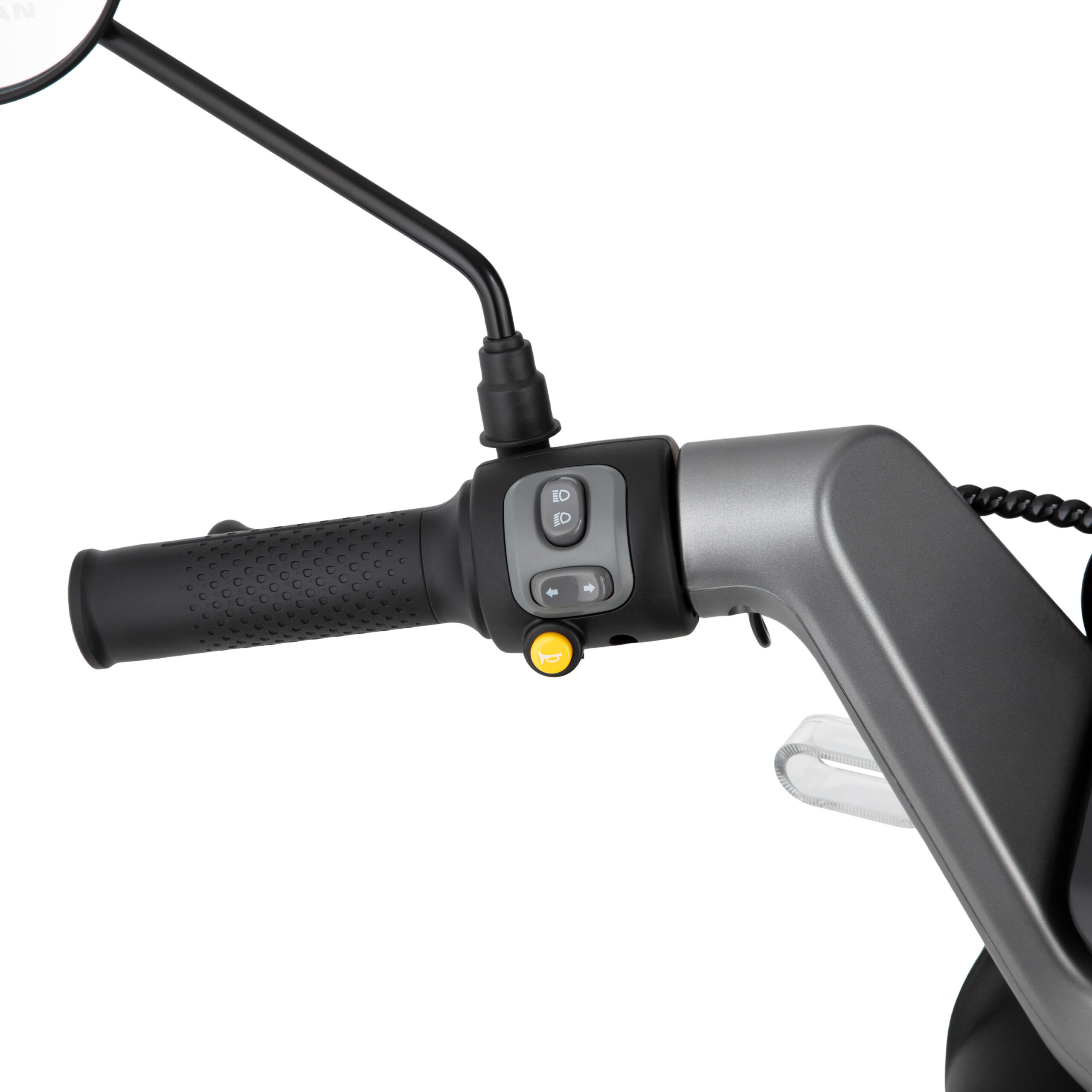 The scooter is designed to accommodate a front-mounted basket, which comes included. It’s a handy solution for transporting bags, packages or personal items. The user can decide whether or not to install it, customizing the scooter to their needs.