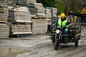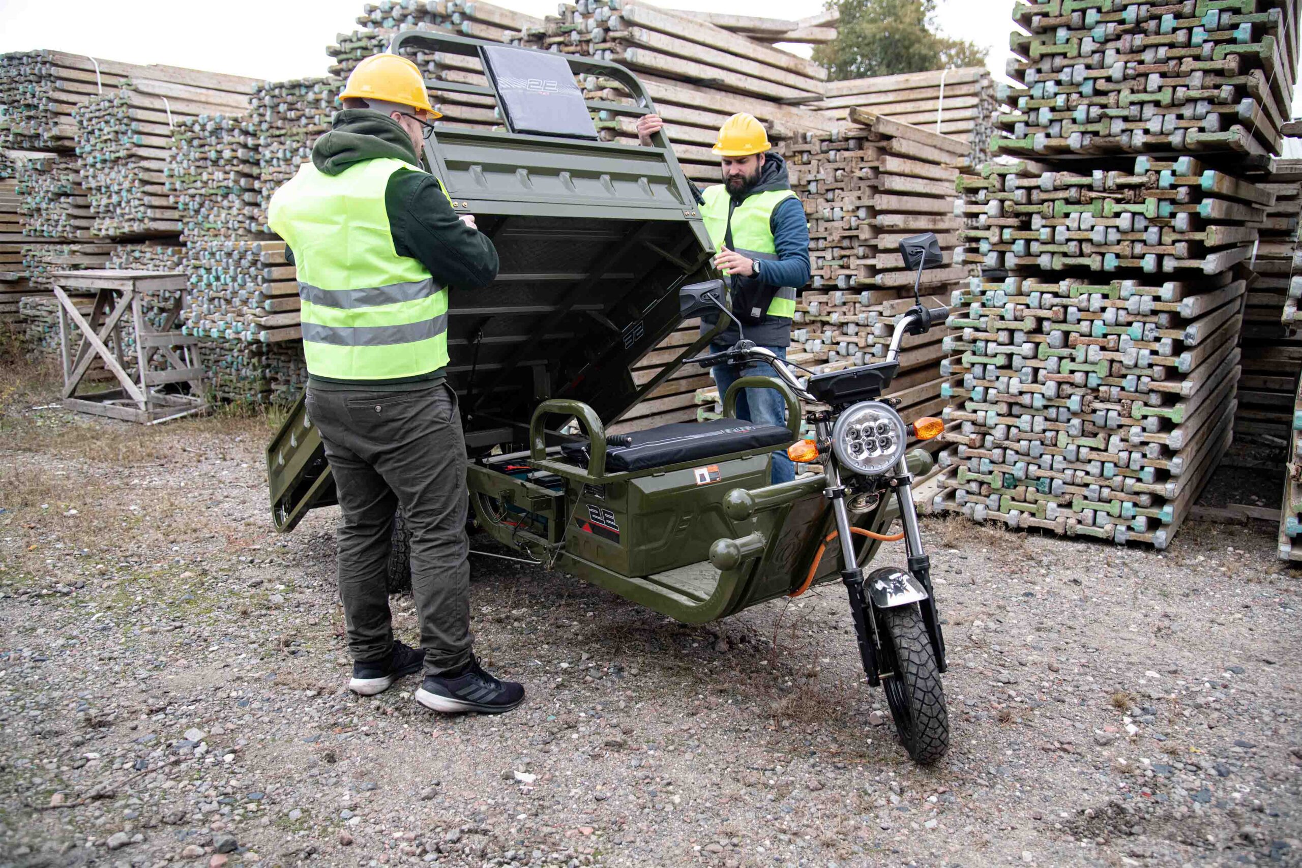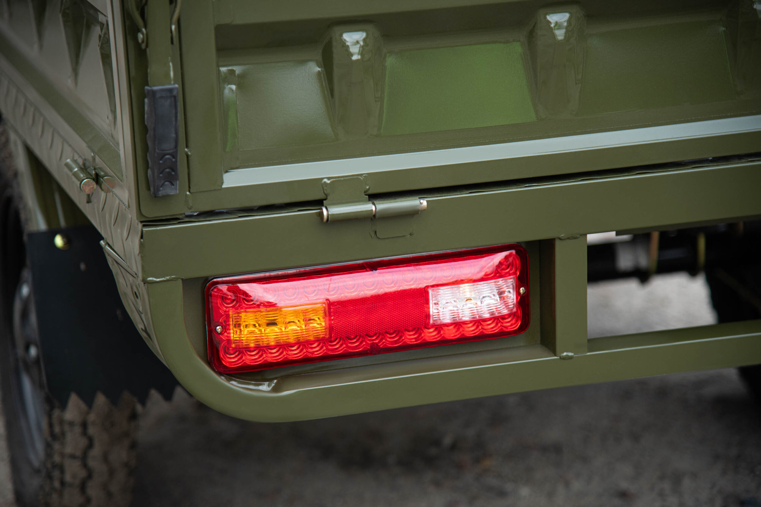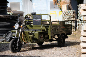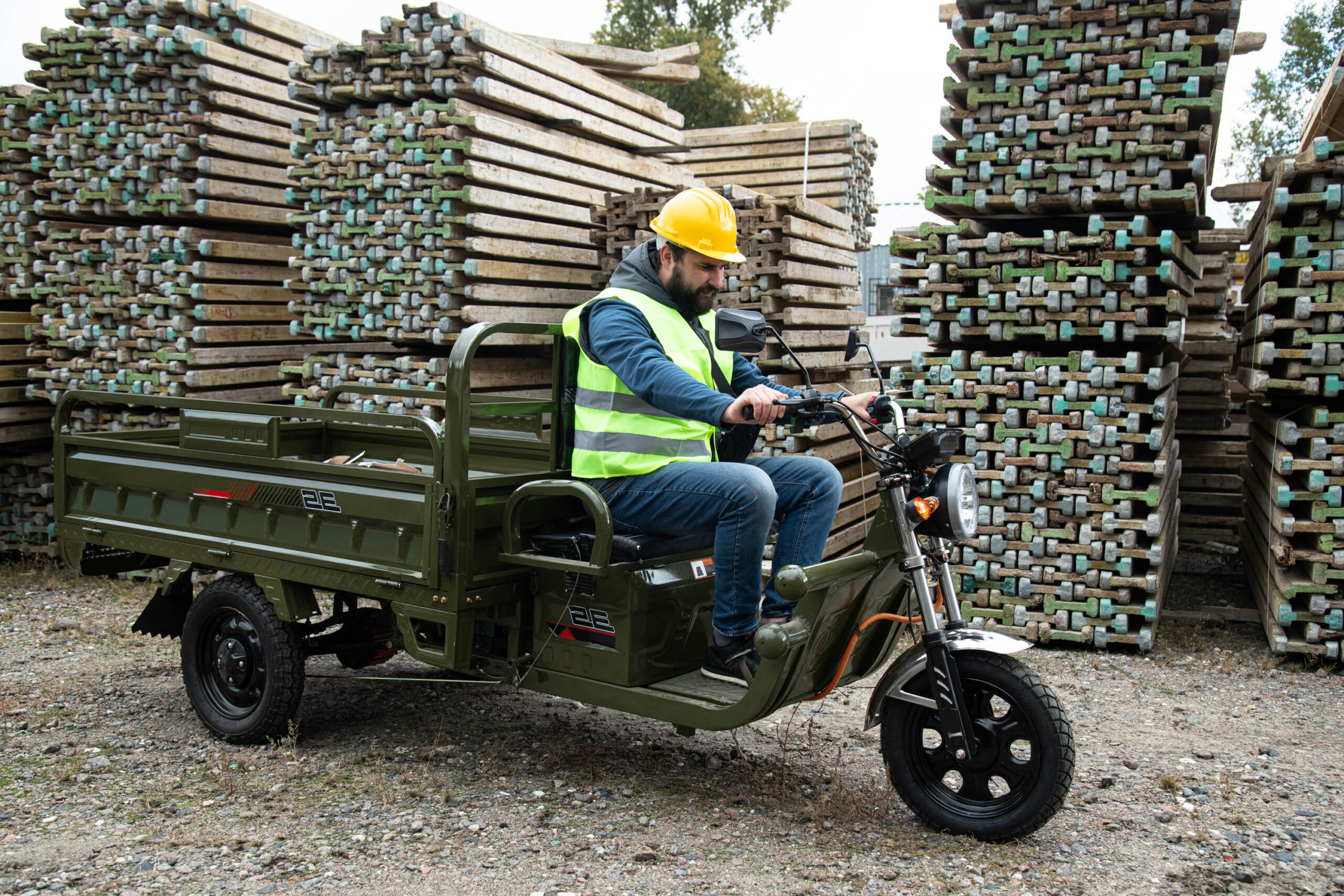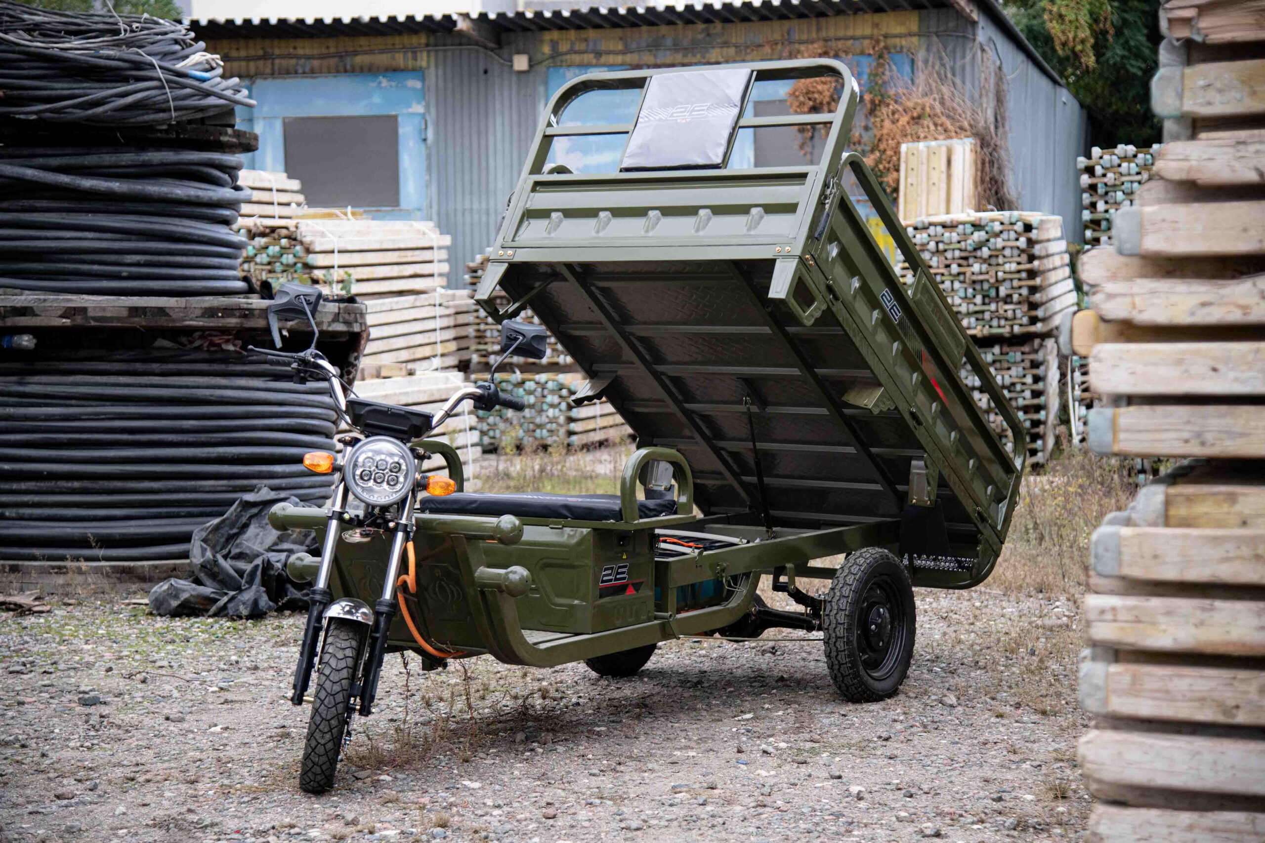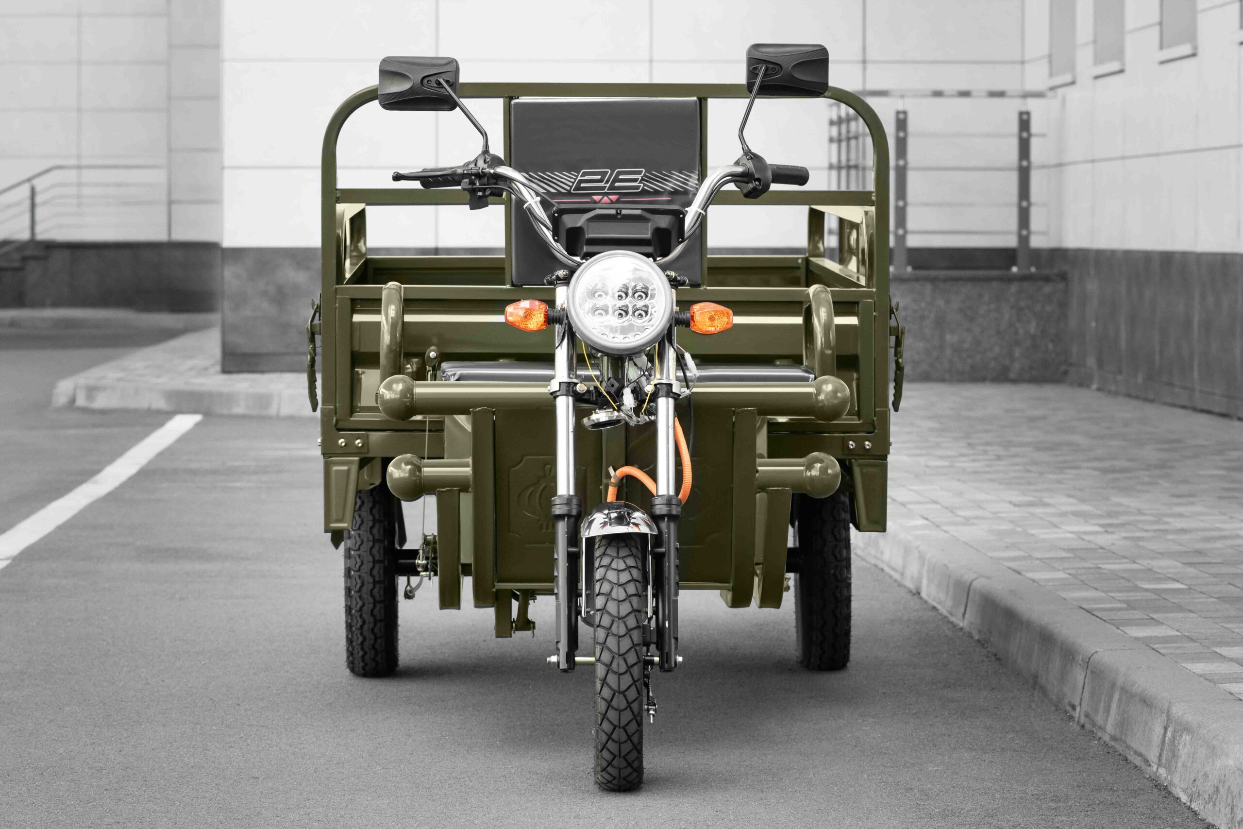 The tricycle is built with a durable frame, a spacious and sturdy cargo platform, and a modern design that ensures both comfort and safety on the road. For enhanced visibility, it is equipped with LED brake lights and turn signals (front and rear).