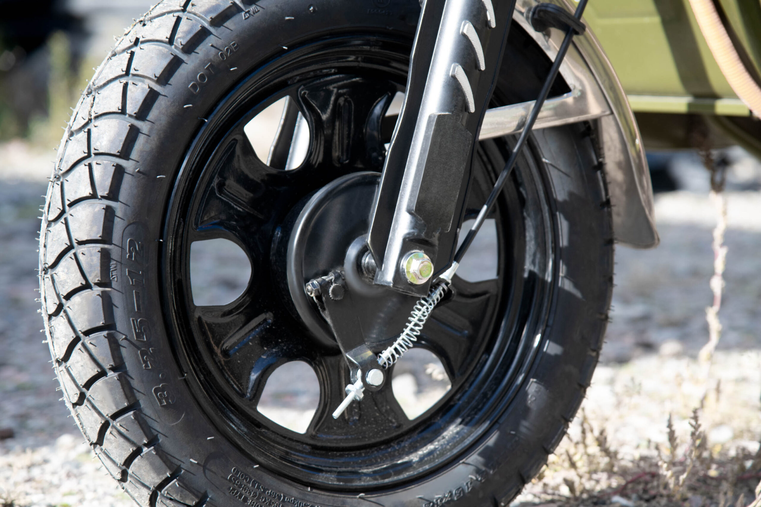 - Wheel size and type: front – 3.25–12″, rear – 4–12″, with inner tubes