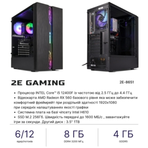 2E 2E PC Complex Gaming Intel i5-12400F/H610/8/256F+1000/RX560-4/FreeDos/2E-G2107-500