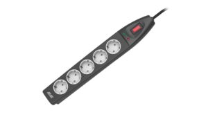 Мережевий фільтр 2E SP515 із кабелем 10 м гарантує безпечне підключення техніки навіть на відстані. П’ять розеток Type-F (Schuko) із кутовим розташуванням (45°) дають змогу зручно під’єднувати кілька пристроїв одночасно. Захист від коливань напруги забезпечує варистор (350 Дж), який блокує живлення в разі перевантаження за струмом. Автоматичний вимикач миттєво реагує в разі замикання, а два LED-індикатори інформують щодо стану заземлення і стабільності мережі. Для додаткової безпеки передбачено захисні шторки від дітей, а корпус із вогнетривкого PC-пластику витримує вплив високої температури, мінімізуючи ризик займання. Дріт H05VV-F із перерізом 3 × 1,5 мм² зі 100 % міді гарантує довговічність навіть за максимального навантаження 3 680 Вт. Крім того, подовжувач має кріплення на зворотному боці, тому його можна встановлювати як горизонтально на підлозі, так і вертикально на стіні.