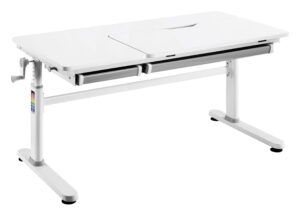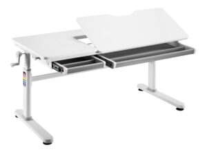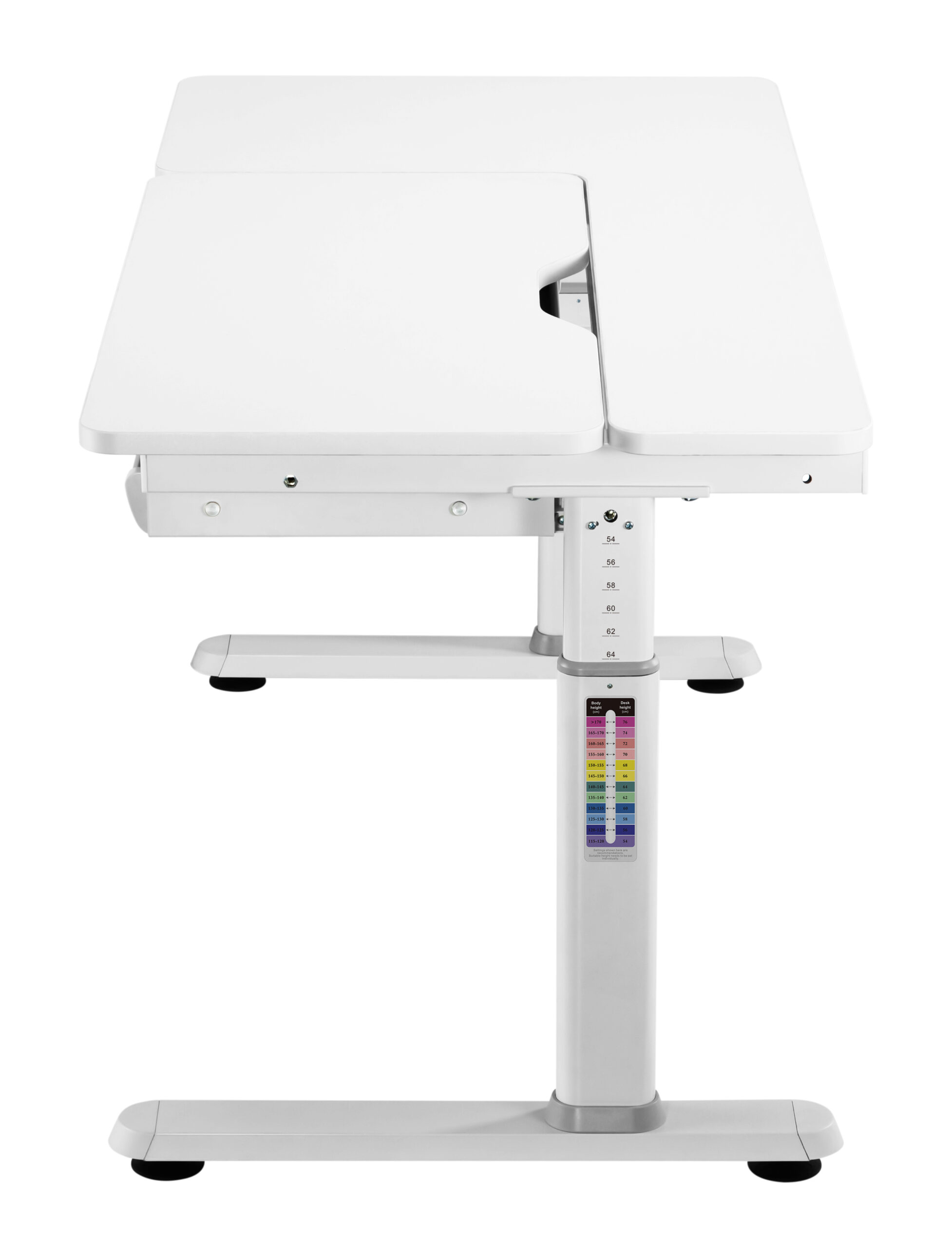 Ергономічний стіл 2E CE301 для навчання та творчості, який росте разом із дитиною. Стіл має регульовану висоту, нахильну стільницю, зручне сховище й безпечні механізми — ідеальний для шкільної писанини, малювання або читання.
