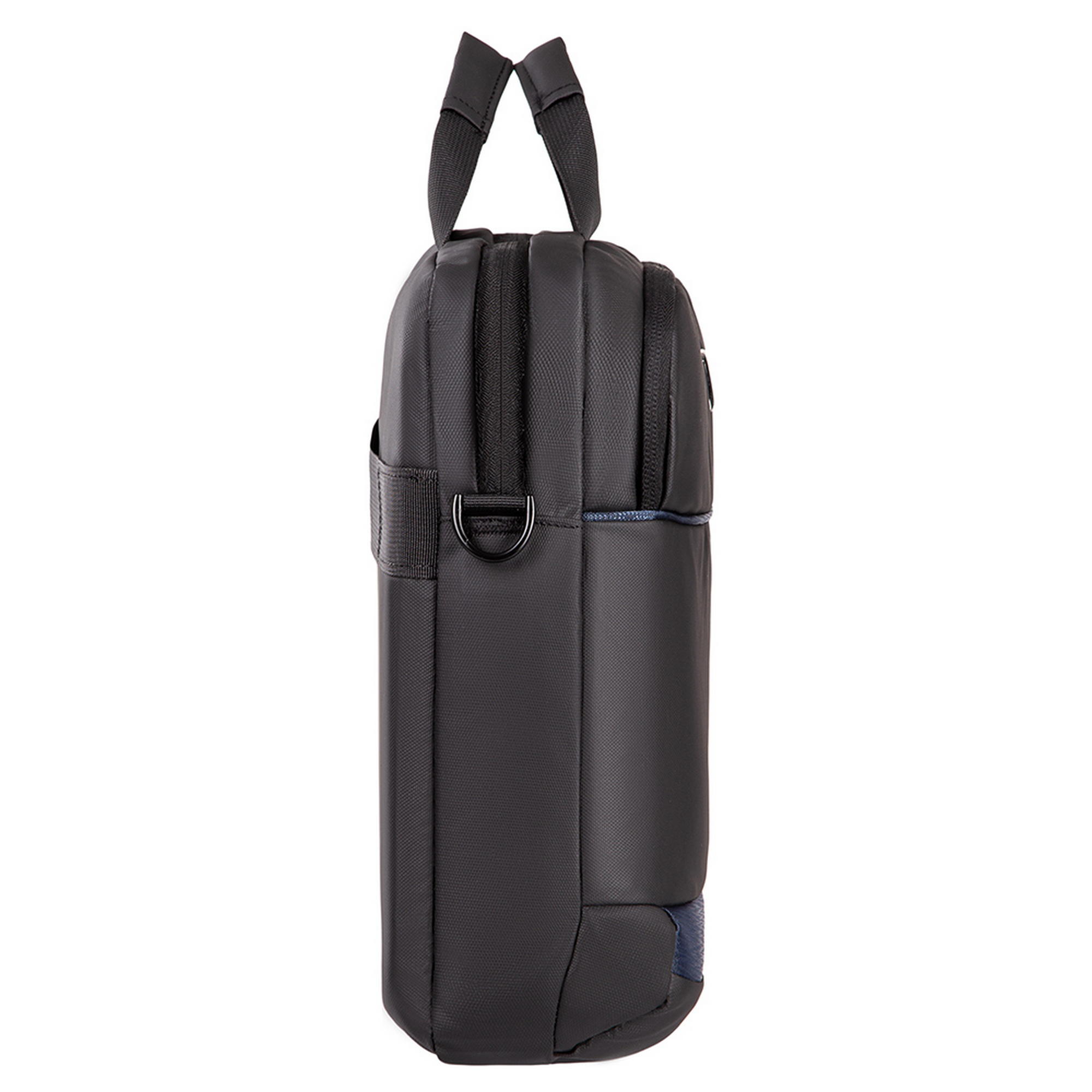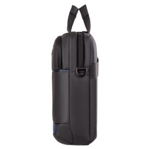 Компактна міська сумка призначена для щоденного використання. Виготовлена з чорного поліуретану з декоративними елементами темно-синього кольору. Комплектується регульованим плечовим ременем.